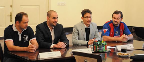 Juhász László önkormányzati képviselő, Várkonyi Ádám a Videoton FC marketing igazgatója, Cser-Palkovics András polgármester és Viza Attila önkormányzati képviselő.