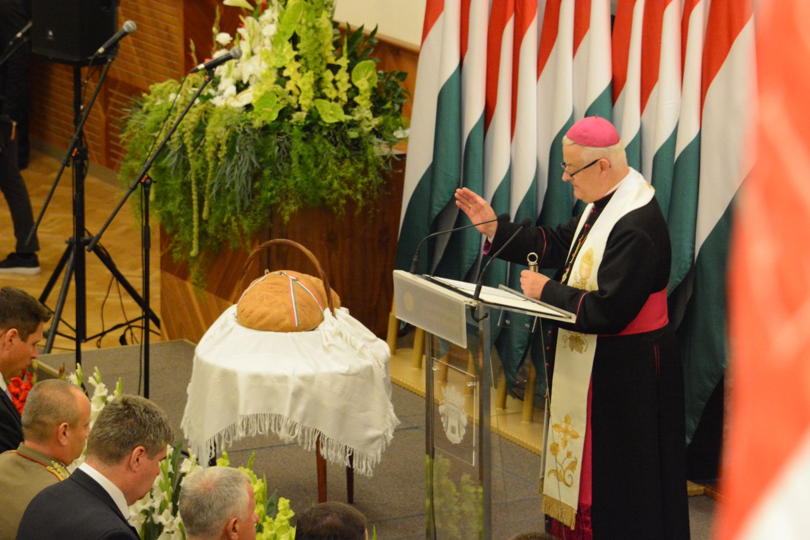 Az ünnepség keretében áldotta meg az új kenyeret Spányi Antal megyés püspök, és kérte Isten áldását valamennyi magyar család kenyerére és életére.