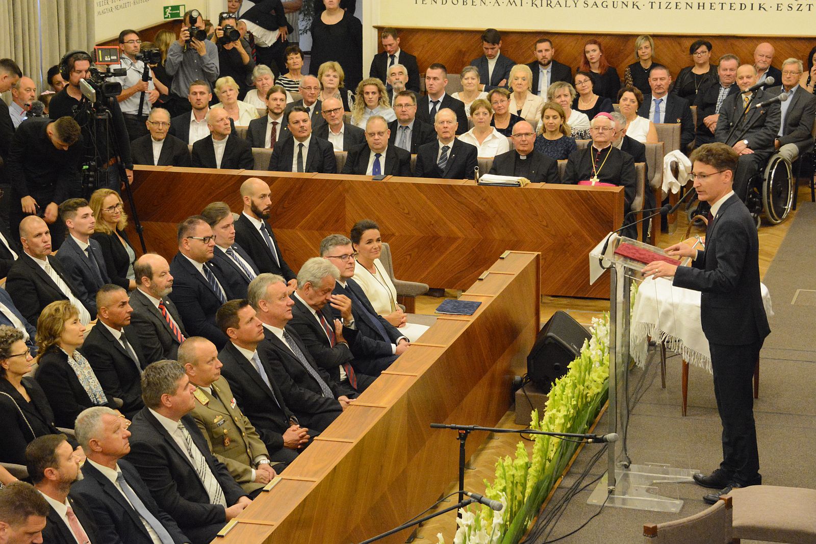 A köztársasági elnök felidézte, hogy Szent István napját még a kommunista diktatúra sem merte teljesen elvenni tőlünk, csak lényegétől igyekezett megfosztani, hiszen titkon akkor is tudták, hogy mi Szent István népe vagyunk, ezt a gyökeret pedig nem lehet kitépni a magyarok szívéből. "Egybeforrt a sorsunk Európáéval, amely elköteleződést Géza fejedelem és Szent István királyunk után mi az Európai Unióhoz való csatlakozás által erősítettük meg. Szent István jól döntött, miképp a rendszerváltó magyarok is. Ma sem az kérdés hová tartozunk, hanem hogy hova tartozunk, hanem, hogy ezer év múlva létezik-e még a magyarok természetes otthona, a keresztény Európa." – mutatott rá az államfő. Kiemelte azt, hogy hogy Magyarországnak szüksége van az európai államok közösségére és nekik is szükségük van ránk. Éppen ezért ma amikor kontinensünk nagyhatalmak küzdőterévé válhat, egymásnak kell vetnünk a vállunkat, közös döntéseket kell hoznunk, amelyek a közös jót szolgálják.