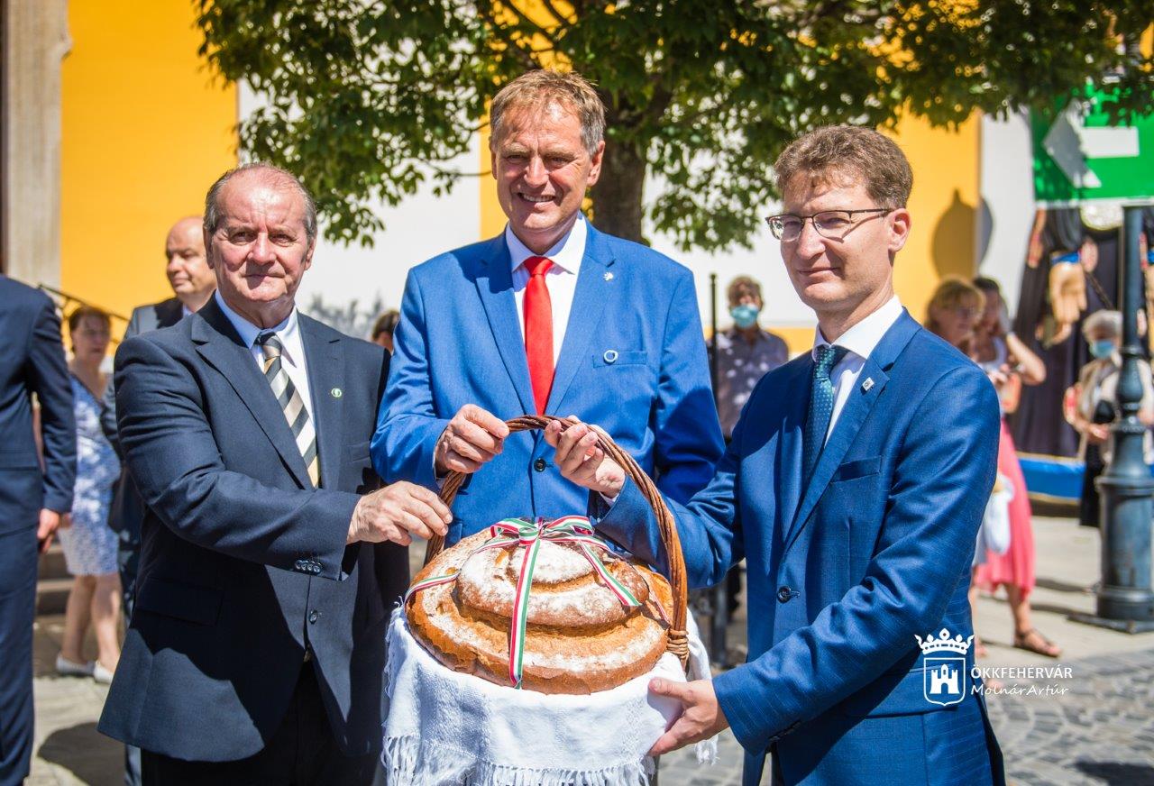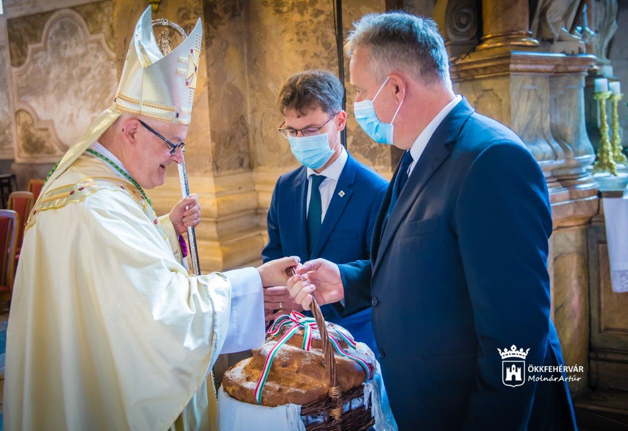 Spányi Antal, megyés püspök a koncelebrált szentmisét követően egy régi hagyományt újított meg, az ereklyével ékesített oltár előtt elimádkozta Szent István királyunk litániáját, majd megáldotta a kenyeret és Isten áldását kérte valamennyi magyar család kenyerére és életére. A megáldott kenyeret Spányi Antal szimbolikusan Dr. Cser-Palkovics András polgármesternek és Dr. Simon László, kormánymegbízottnak, a Fejér Megyei Kormányhivatal vezetőjének adta át.