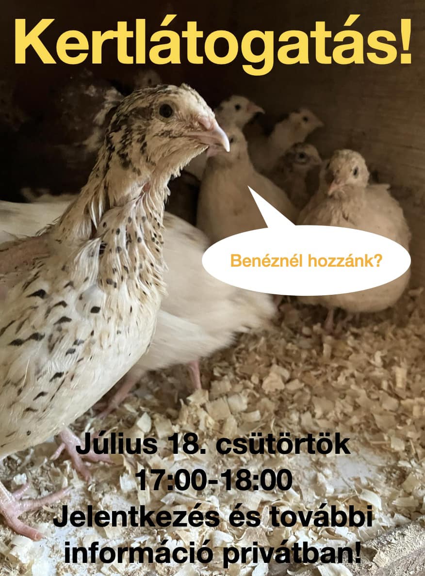 Közösségi oldalukon naprakész beszámolóiknak köszönhetően követhetjük nyomon, ahogy Gyöngyi, a tyúk neveli a kicsibéket, vagy Magdi, Olga és Kálmán, a magyar óriásnyulak ismerkednek egymással, de megismerhetjük Balambér, a futókacsa gácsér gyógyulásának történetét is. A nagyvárosi családi gazdaságot és annak gazdáit, Jucit és Krisztiánt most személyesen is megismerhetik azok, akik kíváncsiak a mindennapok kihívásaira, az állattatás, növénytermesztés buktatóira és sikereire. A Tündök – Családi kisgazdaság július 18-án, csütörtökön 17 és 18 óra között várja az érdeklődőket egy kertlátogatásra.