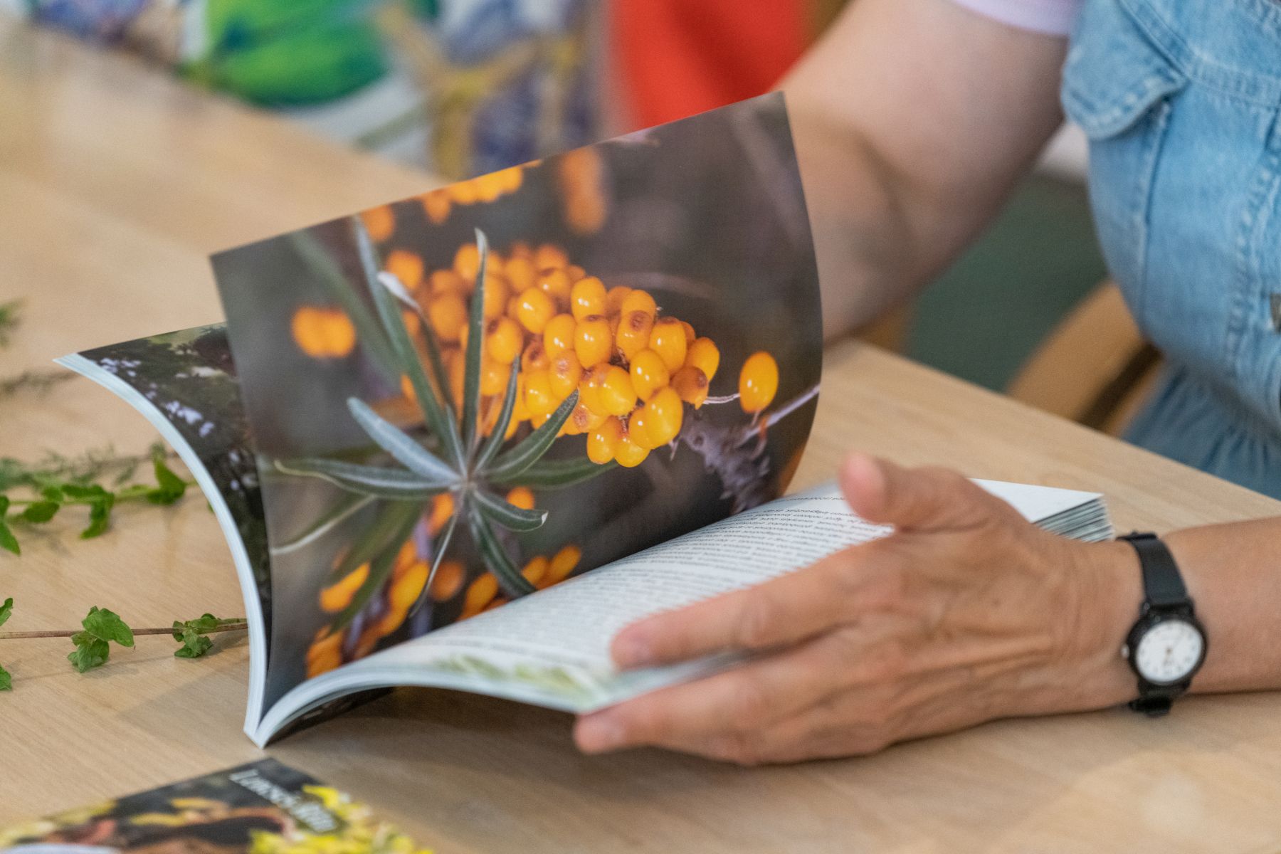 Egy nagy csokor illatozó gyógy- és fűszernövény mellett, valamint a kiskertben és a balkonládában termett levendulából, citromfűből, mentából és fügelevélből készült szirupok kóstolója keretében mutatta be legújabb könyvét Lencsés Rita.
