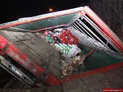 Hétfőn kora este érkezett a székesfehérvári tűzoltóság ügyeletére a bejelentés miszerint a Szent Flórián körúton egy kamion az árokba hajtott. Az Aszalvölgyi utca irányából a Kiskút útja irányába tartó, élelmiszert szállító Renault nyerges vontató jobbra lehajtott az útról, és a sáros, fellazult útpadkán megsüllyedt, s a jobb oldalára dőlt. A kamion rakománya összeborult a raktérben, melytől a vontatmány tartószerkezete megroskadt. A több tonnás rakományt a tűzoltók órákon át egy másik nyerges vontatóra rakodták át. Végül az üres kamiont a székesfehérvári tűzoltóság darujának segítségével sikerült kihúzni az árokból. Személyi sérülés nem történt. Képek a műszaki mentésről!