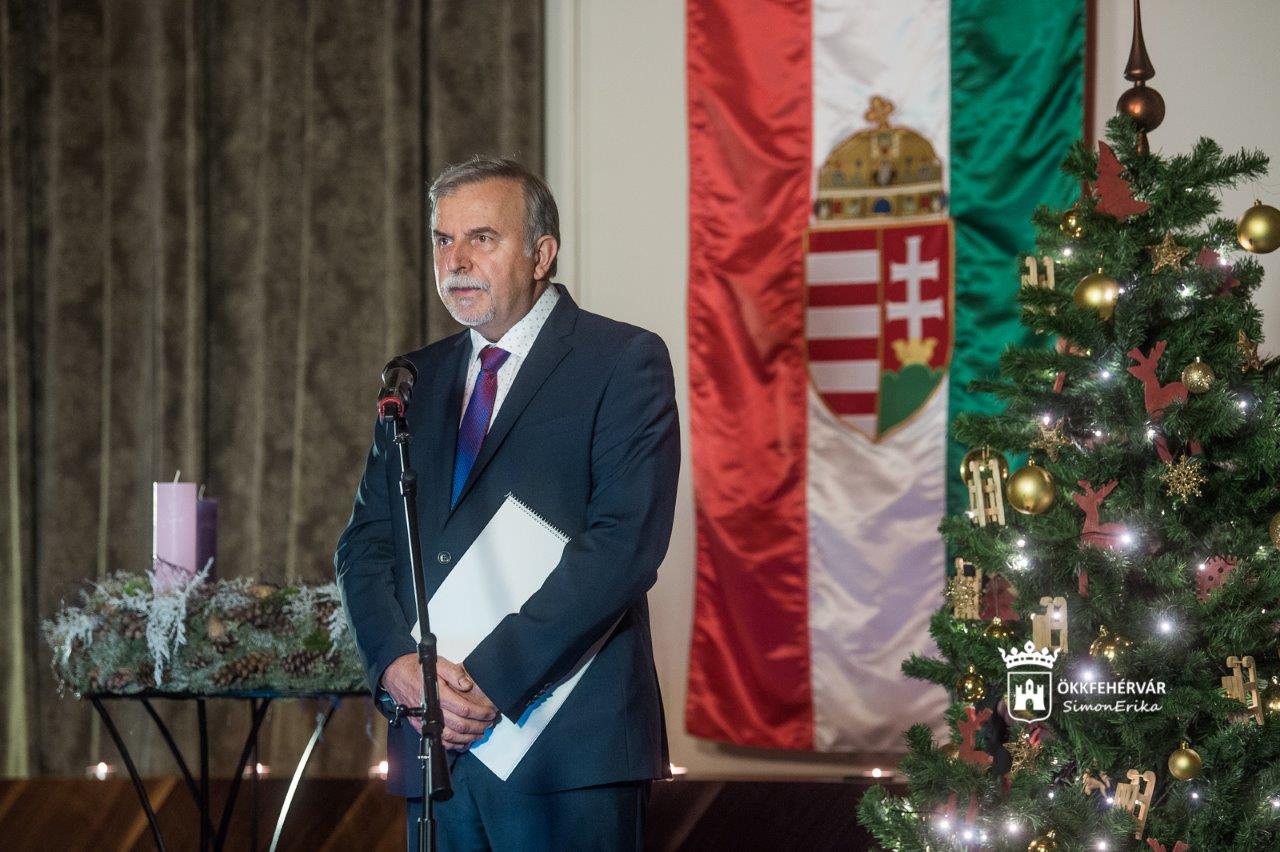 Dr. Szarvas József az ünnepváró testi, lelki és környezeti „rendrakásra” buzdított. „Mindannyian tudjuk, hogy karácsony nem az ajándékozás ünnepe, nem is a vendégjárásé, vagy a bejgli- és halászlé-evésé. Karácsonykor Jézus születését, egy kisded érkezését ünnepeljük. Mi is a teendő, amikor a házba egy csecsemő érkezik? Ki kell takarítani! Ez a kisded, a megtestesült szeretet, azonban most a szívünkbe és a lelkünkbe születik, és költözik be, így kell a takarításhoz is hozzáállnunk!” A főorvos köszöntőjében arra hívta a nézőket, hogy gondolataikban, tetteikben és szívükben készüljenek idén a szeretet ünnepéhez közeledve: irtsák ki a félelmeiket, gyakoroljanak bűnbocsánatot, legyenek figyelmesek egymással és adakozzanak!
