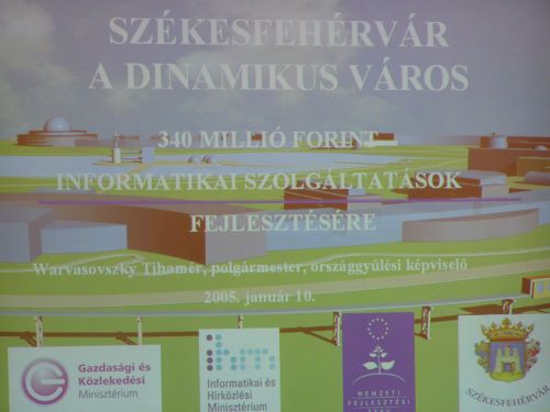 A Gazdasági Versenyképesség Operatív Program pályázaton, mintegy 300 millió forintot nyert Székesfehérvár Önkormányzata informatikai fejlesztésekre. Az elkövetkezendő két évben nyilvános internethozzáférési pontokat létesítenek, térinformatikai rendszert korszerűsítenek, hivatali ügyintézést könnyítenek a városban - mondta Warvasovszky Tihamér Székesfehérvár polgármestere. A 340 milliós fejlesztés kiemelkedően fontos Székesfehérvár informatikai fejlődésében. Az elnyert támogatás 75%-át az Európai Unió, 12,5%-át pedig az állam és a város finanszírozza.