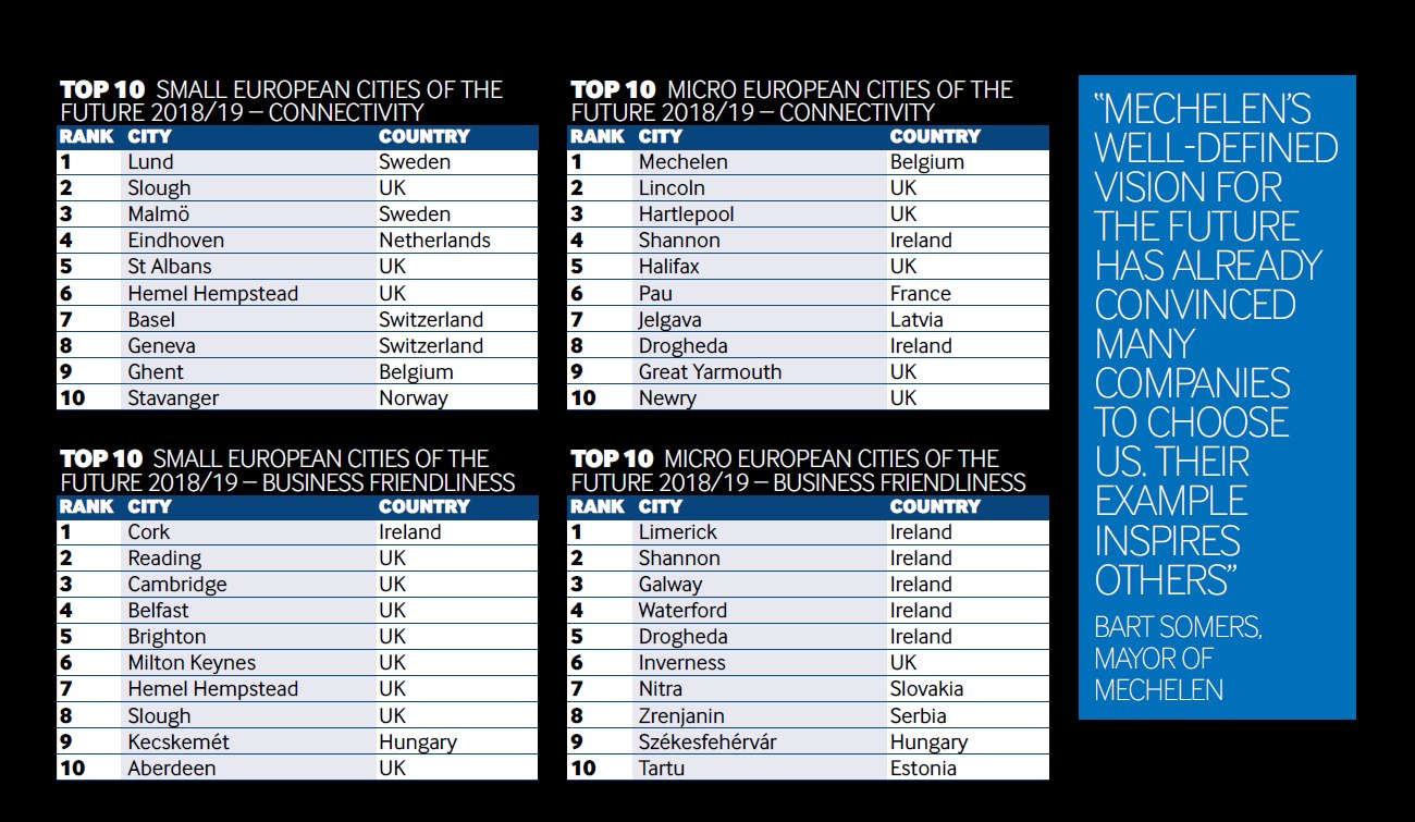 Mint írják, a kisebb városok európai összehasonlításában új szereplőként került a listára Debrecen és Kecskemét. Utóbbi a befektetőbarát környezetet tekintve ért el top 10-es helyezést, míg Debrecen FDI stratégia kategóriában a legjobb európai város díját vehette át Cannes-ban, a díjátadón.