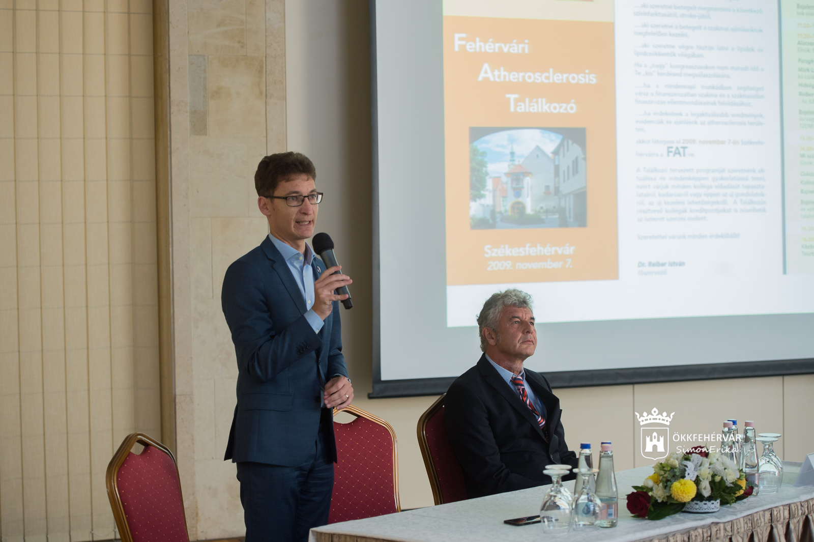 Dr. Cser-Palkovics András polgármester köszöntőjében kiemelte: a város, a megye, a régió életében kitüntetett szerepe van az egészségügy kérdéskörének. Szólt Székesfehérvár és a régió legjelentősebb egészségügyi intézménye, a Fejér Megyei Szent György Egyetemi Oktató Kórház közötti szakmai együttműködésről. „Különösen örülök annak a témafelvetésnek, amiről a mostani konferencia szól, mert ennek is vannak olyan szegmensei az idősügyi ellátás vonatkozásában, amelyek nagyon is önkormányzati feladat- és hatáskörbe tartoznak. Egy-két évtizeden belül az idősügyi ellátás az önkormányzat számára is az egyik legnagyobb – szakmai, szervezési, intézményi és szakember vonatkozásban megjelenő – kihívást jelenti majd. A kérdés kezelése nem elképzelhető az egészségügyi és szociális szakterület együttműködése nélkül.” – tette hozzá a polgármester.