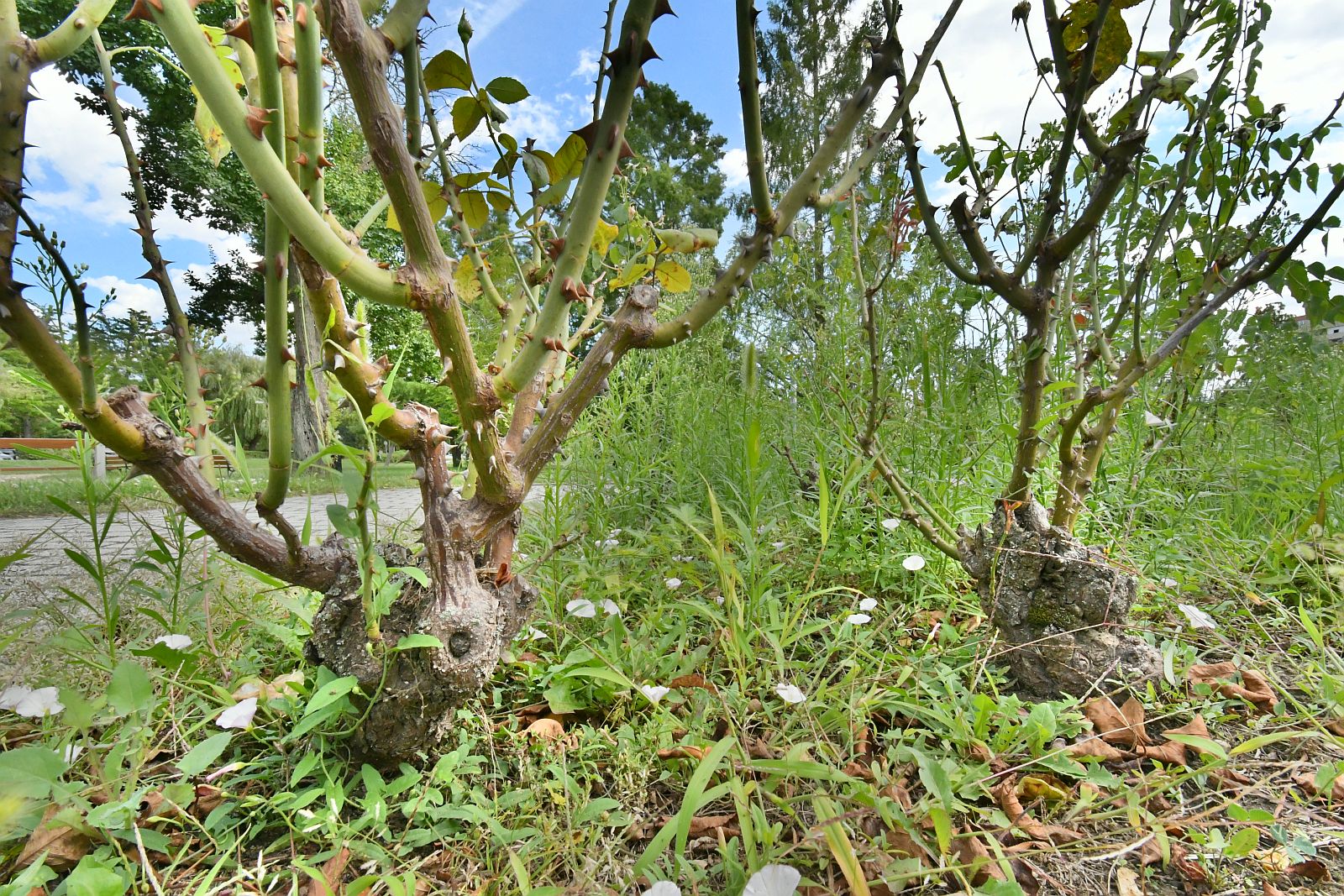 A park rózsatöveinek többsége már nagyon elöregedett.