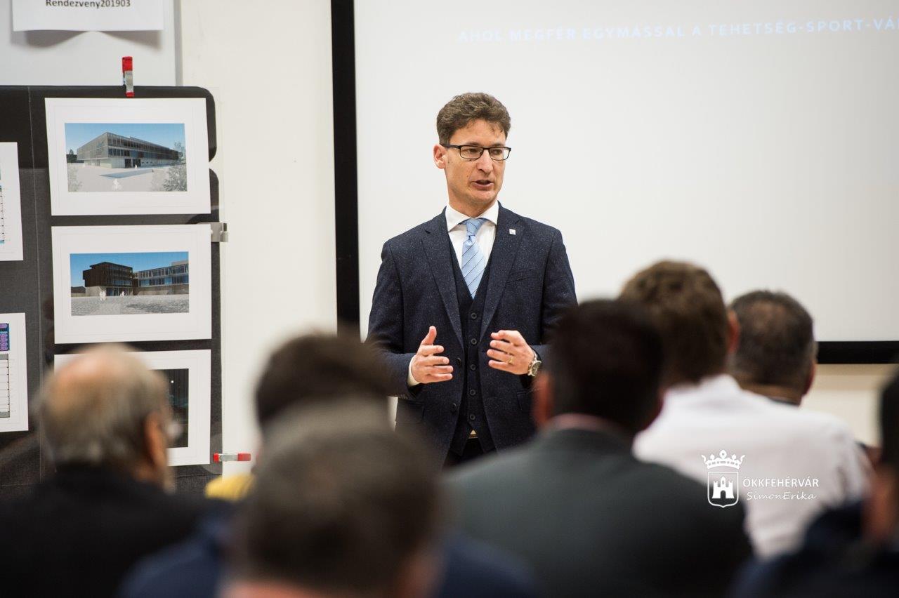 A város polgármestere köszönetet mondott az Alba Fehérvárnak, hogy belevágott ebbe a beruházásba, ami komoly kihívásokat rejt magában. A csarnok kivált két ma meglévő csarnokot: a kosárlabda és a kézilabda otthonát is. A kosárlabda otthona már nem felel meg a nemzetközi elvárásoknak, a kézilabda esetében pedig a Köfém csarnok már nagyon elavult. Fontos az új csarnok megépítése a városi rendezvények szempontjából is, aminek jó példája, hogy a szombaton az eső miatt elmaradt ballagást nem lehetett megrendezni olyan helyen, ahol 1500 diák és a családjuk kényelmesen elfért volna. Kifejezetten egy olyan multifunkcionális létesítmény megépítésében gondolkodtunk, ami a közösségi tér funkciót is betölti nem csak a sport, hanem a kultúra vagy az oktatás területén.