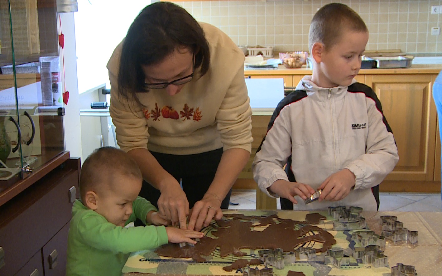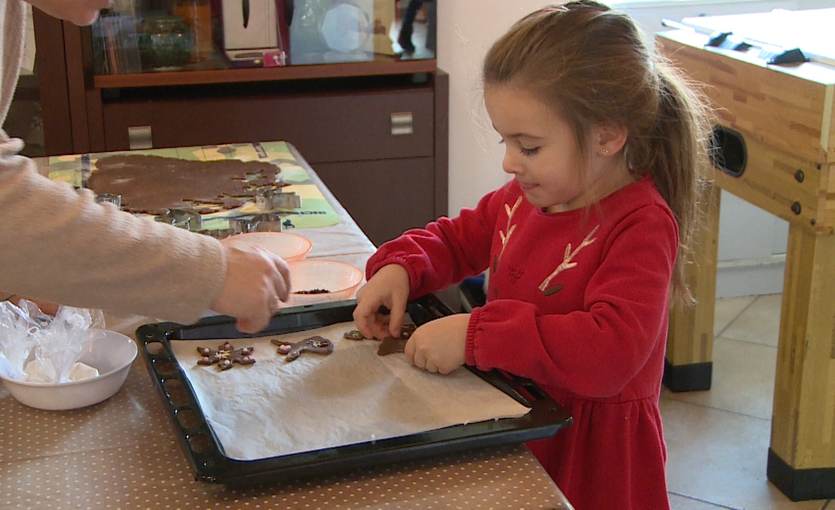 A kicsik mézeskalácsot sütöttek, asztali díszeket, adventi koszorúkat készítettek délelőtt, míg a karitász csoport felnőtt tagjai azokat az Erzsébet kenyereket csomagolták, melyeket vasárnap délelőtt osztanak majd ki a híveknek a templomban.