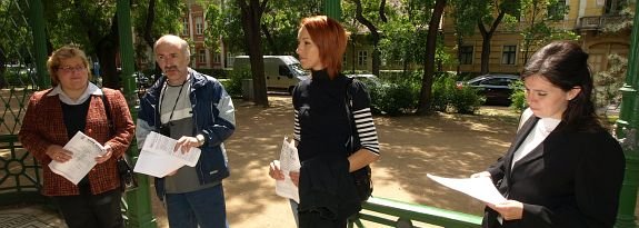 A tervezett kiadványról szóló sajtótájékoztatót Csordás Csilla projektvezető, Róka Gyula az ARISZ munkatársa, Farkas Ágnes újságíró és Elekes Zsuzsa civil referens tartották a Zichy ligetben.