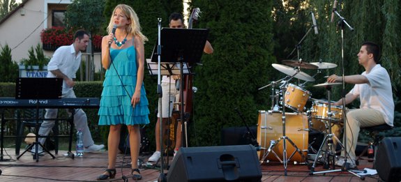 A kiállításmegnyitót követően a Gáspár Szilvi Jazz Band varázsolt kellemes hangulatot a közösségi ház kertjébe, ahová sokan látogattak ki a meleg nyári estén. Az együttes repertoárja főként jazz-örökzöldekből áll, de műsorukban megtalálhatóak a latin, funky és a soul elemei is. A zenekar öt éve alakult, tagjai 2009-ben végeztek a Liszt Ferenc Zeneművészeti Egyetem Jazz Tanszékén.