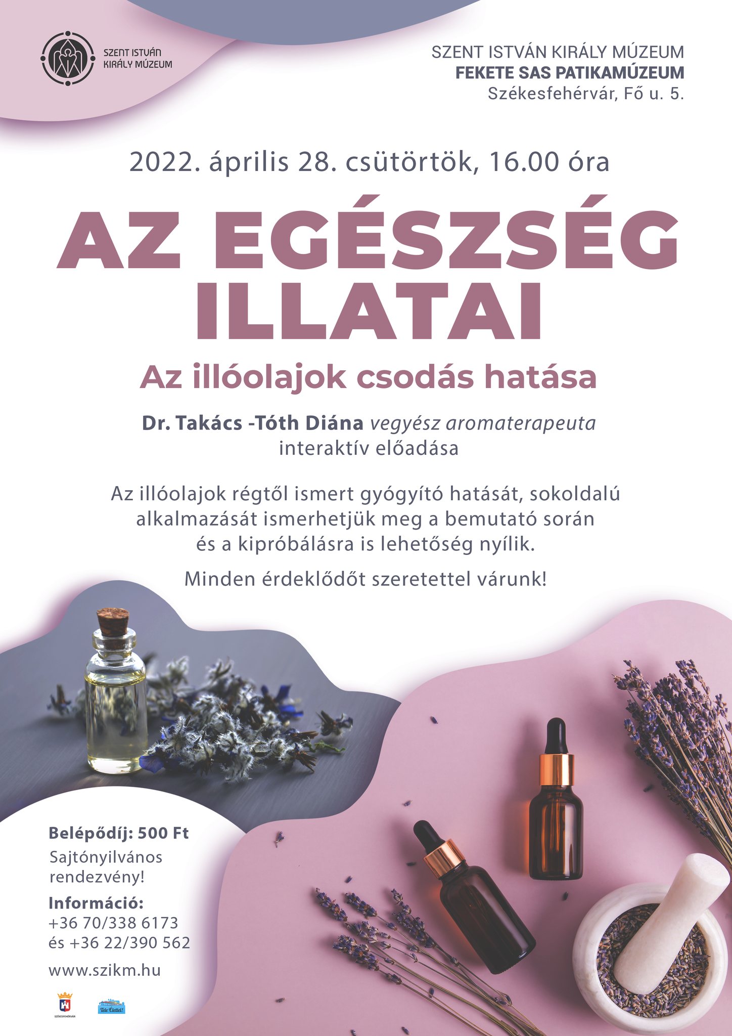 Érzékszervekre ható programokat kínál a hétre a Szent István Király Múzeum. A Fekete Sas Patikában április 28-án, csütörtökön 16 órától az egészség illataiba szippanthatnak bele az érdeklődők.