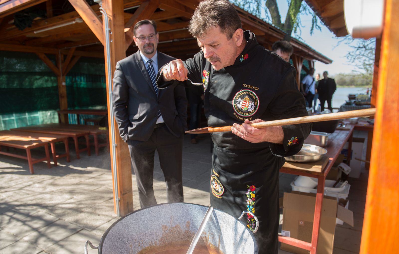 A népszerű tavaszi gasztronómiai eseményről Vargha Tamás, Székesfehérvár országgyűlési képviselője, Viza Attila önkormányzati képviselő, valamint Nagy Attila, a Horgász Egyesületek Fejér Megyei Szövetségének elnöke és Urfi Tamás ügyvezető tartott sajtótájékoztatót a helyszínen, ahol Pamminger Ede mesterszakács kedvcsinálónak halétellel várta a sajtó képviselőit.