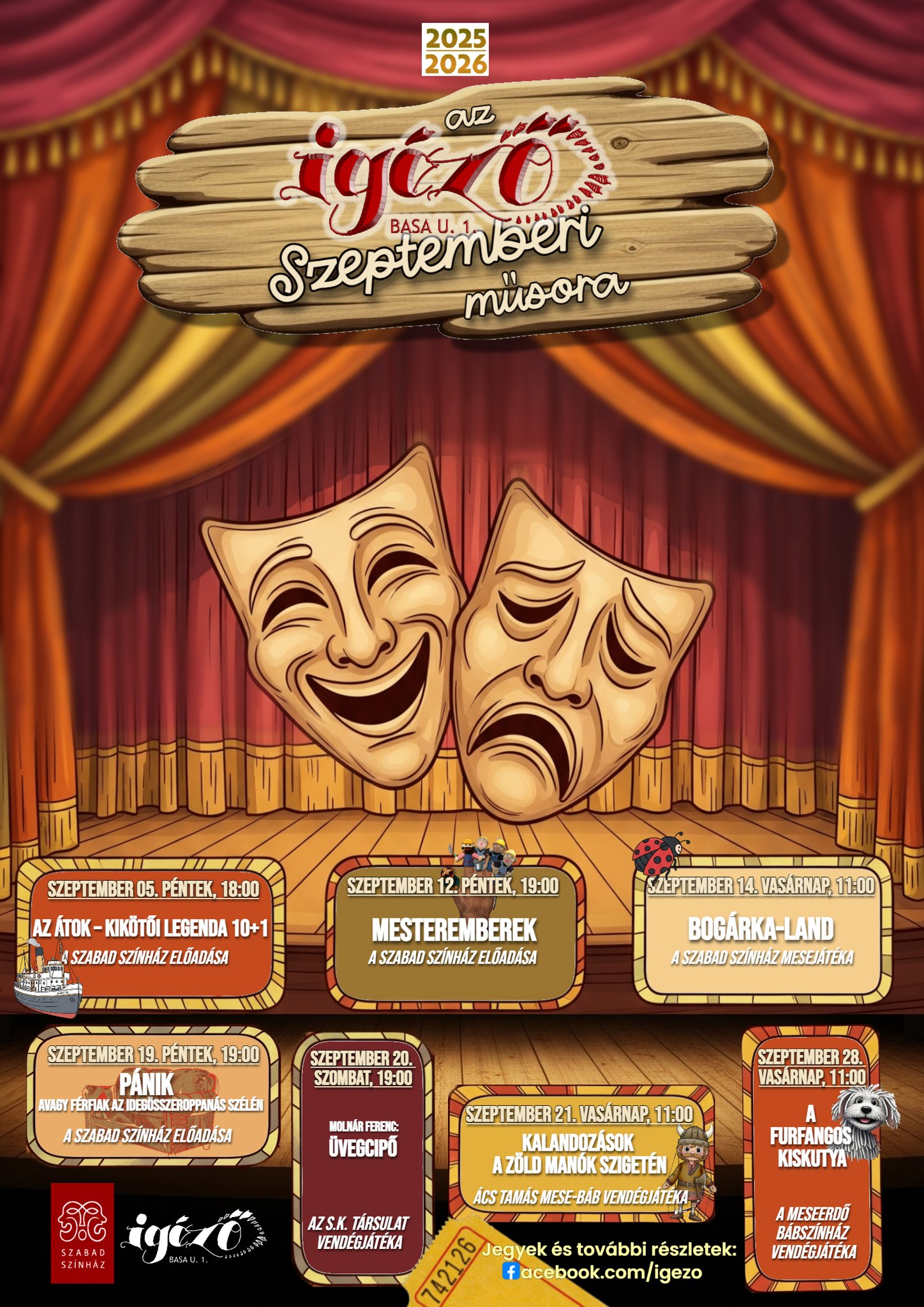 Az Igéző szeptemberi előadásaira jegyek elővételben az Igéző pénztárában (Basa u 1.) kaphatók, illetve a 06 22/790-758-s telefonszámon, vagy a igezo2014@gmail.com email címen, illetve a kulturális színtér közösségi oldalán foglalhatók.