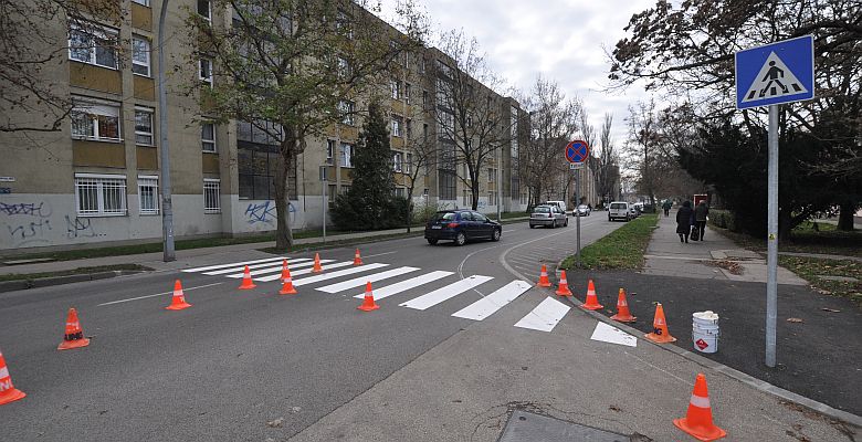 A napokban városszerte több helyen befejeződik a gyalogos átkelőhelyek építése. Az esős időjárás elmúltával az útburkolati jeleket is elkezdte felfesteni a kivitelező. Új gyalogos átkelők épültek a Liget sornál az uszoda és Koronás park között, az Ybl orvosi rendelő előtt, a Tisztiklubnál és a Zichy liget Dózsa Gy. út felőli sarkán, a Csíkvári úton és a Pozsonyi út – Karinthy utca kereszteződésében, továbbá a Budai úton az Interspar előtt, a Budai út - Seregélyesi út kereszteződésben és a Halesz ligetnél.