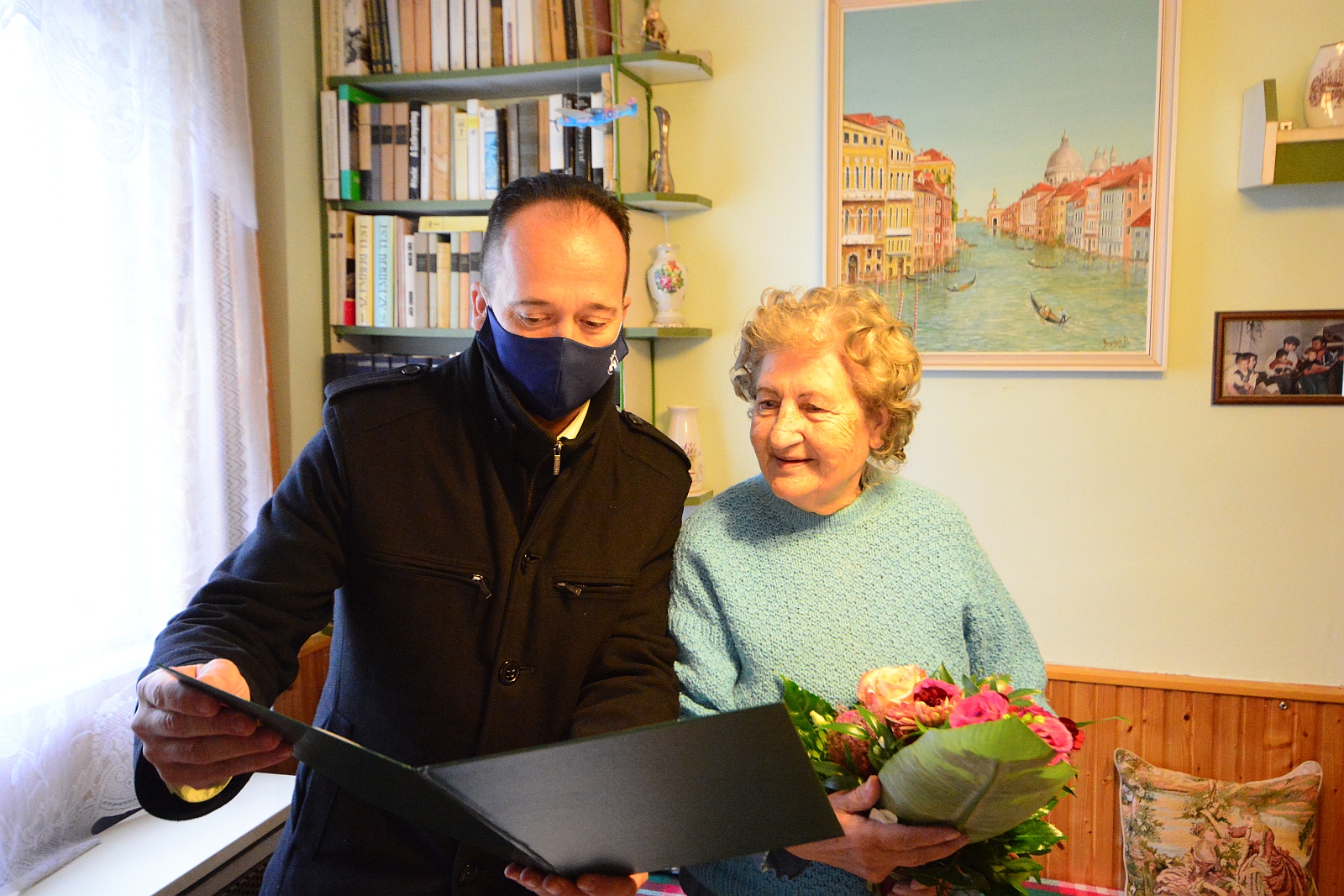 A 90 éves Eszéki Jánosnét otthonában köszöntötte Székesfehérvár Önkormányzata és polgármestere nevében Földi Zoltán. A városrész önkormányzati képviselője ajándékcsomaggal és a miniszterelnök által aláírt emléklappal lepte meg az ünnepeltet.