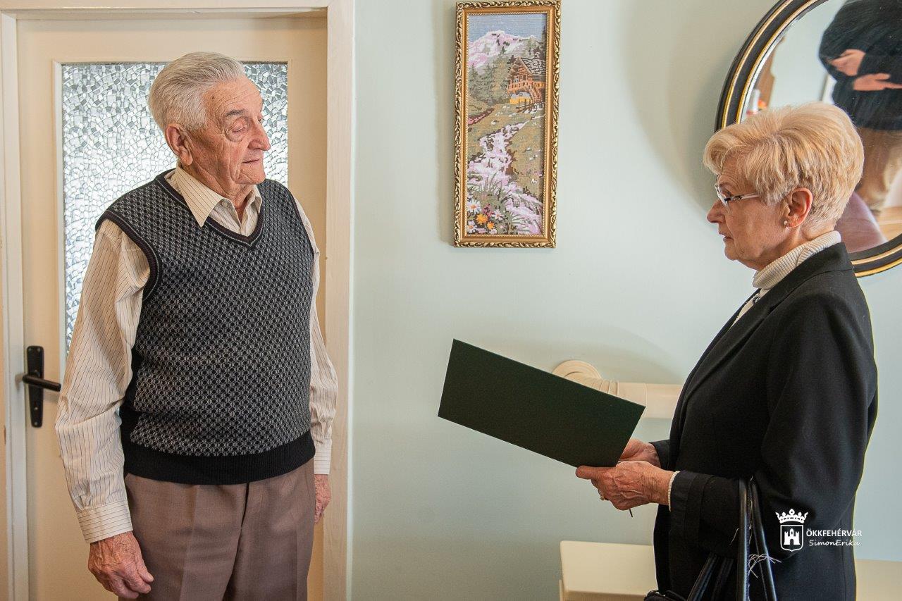 Az ünnepeltet a város nevében dr. Dienesné Fluck Györgyi önkormányzati képviselő, valamint Zentai Zsolt, az Önkormányzat idősügyi szakértője köszöntötték, akik a városi ajándékcsomag mellett a miniszterelnök által aláírt emléklapot is átadták.