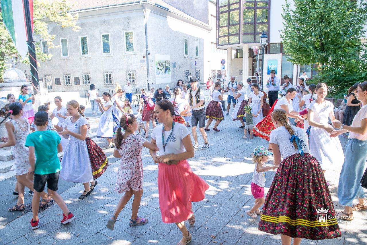 Jól ismert dallamok csendültek fel az Országzászló téren 16 órától, és a résztvevők ügyesen járták a csárdást. A rimaszombatiakat a Spanyolországból érkezett Rosa Del Azafrán táncosai követték, akik tradicionális táncaikból (seguidilla, fandango, jota) kínáltak ízelítőt, amelyet a tájegységre jellemző hangszerekkel - lant, bandurria, gitár, hegedű - adtak elő. Nemcsak táncba, de játékba is hívták a gyerekeket és az alkotó kedvű felnőtteket: dióhéjból, pálcikából egy kis fonal segítségével apró hangszert készítettek és csatlakozva a kasztanyettán játszókhoz, együtt adták a ritmust a tánclépésekhez.