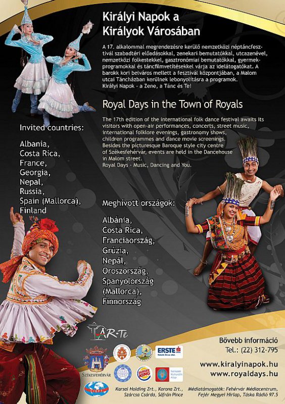 Idén már 17. alkalommal rendezik meg a nemzetközi néptáncfesztivált Székesfehérváron, melyre a világ különböző tájairól érkeznek csoportok: Costa Ricáról, Franciaországból, Spanyolországból (Mallorcáról), Finnországból és Grúziából.