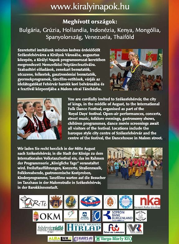 A színfalak mögött már lázasan folyik a felkészülés az augusztusi Királyi Napokra. A szervezőknek idén, több mint 150 jelentkező együttesből kellett kiválasztaniuk azokat a csoportokat, akik meghívást kapnak az idei rendezvényre. Az idei meghívottak: Bulgária, Szlovákia, Hollandia, Indonézia, Kenya, Mongólia, Spanyolország, Venezuela és Thaiföld táncsoportja.