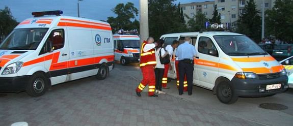 A Palotai úti üzletsoron a mintegy négy méter magas épület tűzlétráról esett le egy gyerek és egy felnőtt, mikor kiszakadt a létra a falból a súlyuk alatt június 3-án, pénteken este. A tűzoltóság ügyeletét a mentők értesítették, a jelzés szerint a tetőn még két ember fent tartózkodott. A súlyosan sérült gyereket és férfitkórházba szállították, a tűzoltók átvizsgálták a tetőt, de senkit sem találtak az épület tetején.