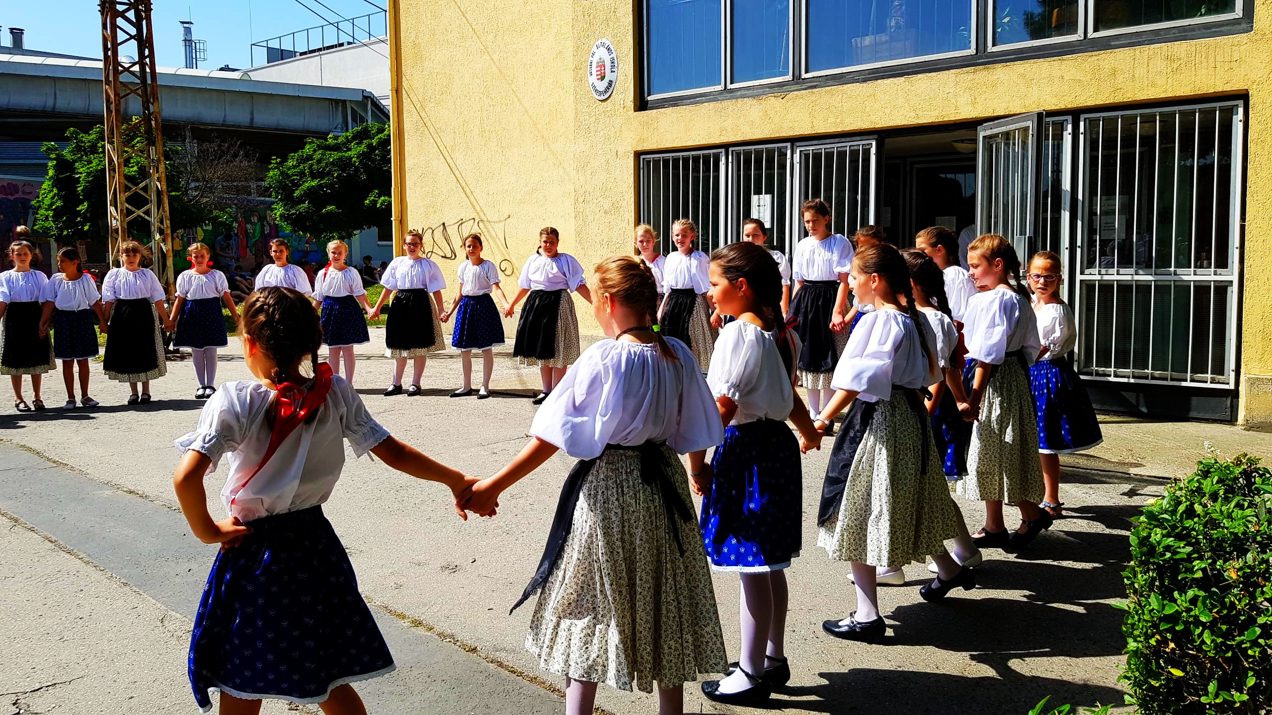 Elsőként Csáder Luca 5.B osztályos tanuló egy pünkösdi verset szavalt, felkészítője Végváriné Dóczi Réka volt. Ezt követően a 3. és 4. osztályos gyermekek adtak elő pünkösdi táncokat Brücklerné Cserpes Judit táncpedagógus vezetésével.