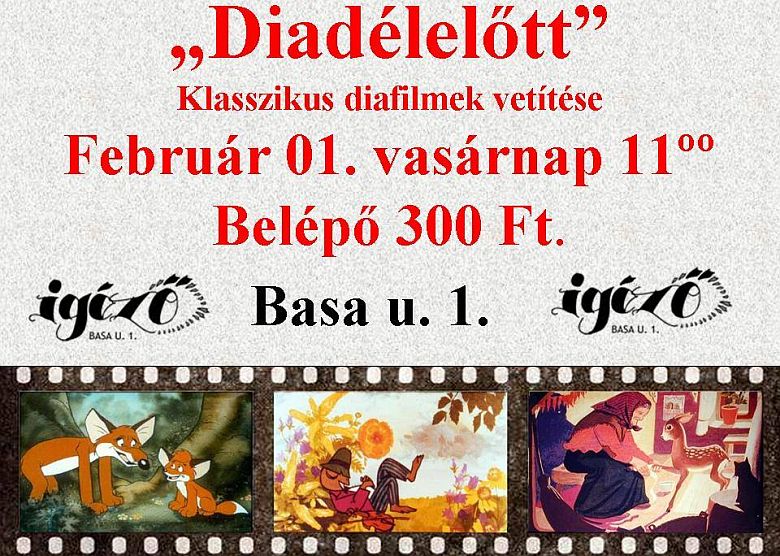 2015. február elsején, vasárnap délelőtt 11 órakor klasszikus diavetítést szerveznek gyermekeknek én nosztalgiára vágyó felnőtteknek egyaránt a fehérvári Igézőben (Basa utca 1.). Az eseményre hozott anyagot is szívesen várnak: ha valaki különleges diafilmjét szeretné mással is megosztani, akkor azt is levetítik az Igézőben. A programon 300 Forintos jegy megvásárlásával lehet részt venni.