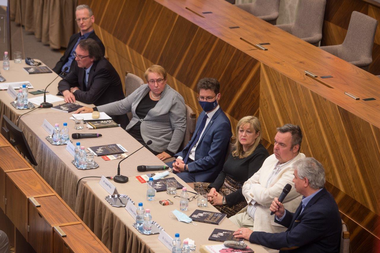 Az L. Simon László szerkesztésében megjelent Klebelsberg – Kornis – Hóman A két világháború közötti kultúrpolitikusok székesfehérvári szobrai című kötet kapcsán Schmidt Mária történész, a Terror Háza Múzeum főigazgatója, dr. Demeter Zsófia történész, dr. Cser-Palkovics András polgármester, L. Simon László József Attila-díjas író, szerkesztő, országgyűlési képviselő, Ujváry Gábor történész, a VERITAS Történetkutató Intézet és Levéltár intézetvezetője szólt az akkori politikai életről, a történelmi helyzetről, valamint a kultúrpolitika és történelemtudomány kiemelkedő személyiségeiről, a 2013-ban és 2014-ben megvalósult és a 2015-ben meghiúsult szoborállításokról.