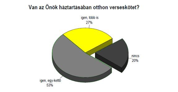 Az adatfelvétel során elért reprezentatív minta alapján kiderült, hogy a verseskötetek az emberek háztartásában ugyanolyan magas arányban megtalálhatók, mint más könyvek vagy nyomtatványok, a megkérdezettek 53 százaléka nyilatkozott úgy, hogy egy-két verseskötete van otthon, további 27 százalékuknál több ilyen kötet is van otthon a polcokon. Ahonnan teljesen hiányoznak a verseskötetek a háztartásból, a fehérváriak egyötödét teszik ki. A válaszokat alapvetően két demográfiai jellemző határozza meg, az életkor és az iskolai végzettség. Megállapítható, hogy míg a 35 év alatti fiatalok esetében mindössze 8 százalékban hiányoznak a verseskötetek otthonról, a középkorú lakosok esetében ez az arány már 13 százalék, a 60 éven felüliek esetében viszont már eléri az 50 százalékot is. A legtöbb verseskötet – ahogy az várható volt – a diplomás háztartásokban van, itt a megkérdezettek 60 százaléka mondta, hogy több is van otthon, s további 37 százalékban egy-két verseskötet található. Az érettségivel nem rendelkező családokban ugyanakkor csak minden másodikban van egyáltalán verseskötet, jellemzően egy-két könyvről van szó.