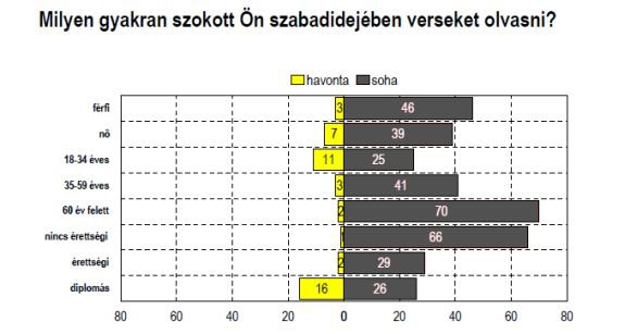 Függetlenül attól, hogy a megkérdezett székesfehérváriak 42 százaléka soha nem olvas verseket, az emberek háromnegyedének van kedvenc költője, érdekes módon éppen a több verset olvasó fiataloknak van kevésbé kedvenceik, míg az idősebbeknek inkább.