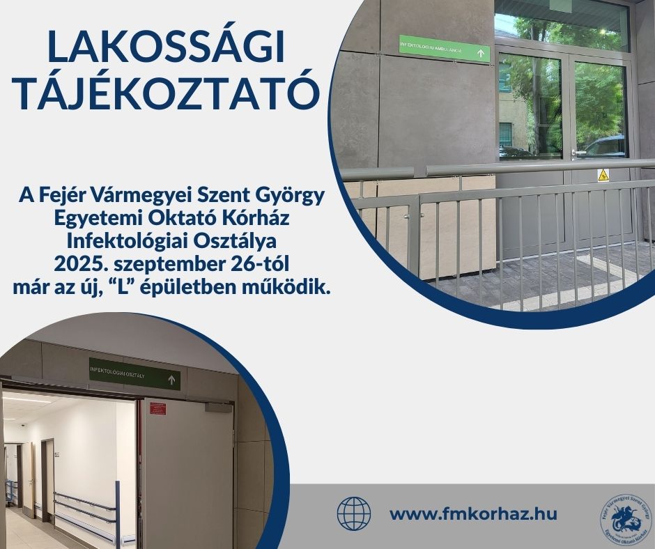 A kórház közösségi oldalán közölte a hírt, infektológiai osztályuk 2025. szeptember 26-tól már az új, „L” épület első szintjén működik; az Infektológiai Ambulancia és a Nemzetközi Oltópont pedig 2025. szeptember 29-től várja az új helyszínen a betegeket.