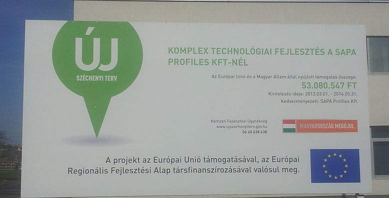 A székesfehérvári SAPA Profiles Kft. több mint 53 millió forint vissza nem térítendő támogatást nyert el a „Komplex technológiai fejlesztés és foglalkoztatás támogatása” című pályázaton az Új Széchenyi Terv keretében. A projekt, mely hozzájárul a helyi gazdasági, szociális környezet fejlődéséhez az Európai Unió támogatásával, az Európai Regionális Fejlesztési Alap (ERFA) társfinanszírozásával valósul meg.