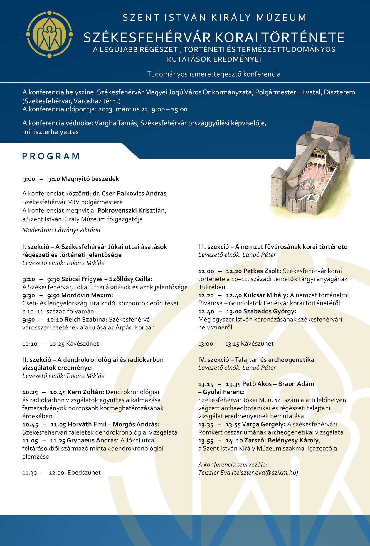 A programsorozat március 22-én, szerdán a Székesfehérvár korai története tudományos konferenciával indul a Városháza Dísztermében.