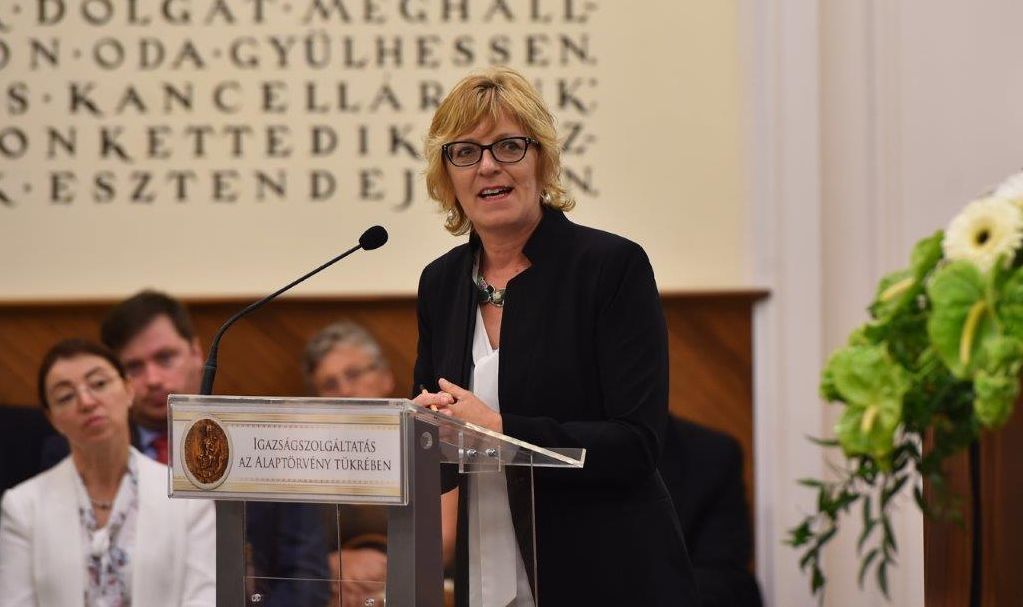 Az igazságszolgáltatás szervezeti függetlenségéről Handó Tünde, az Országos Bírói Hivatal elnöke tartott előadást. A bírói hatalom gyakorlásáról szóló 1869-es törvényről beszélt, ami kimondta a közigazgatás és az igazságszolgáltatását elkülönülését. Majd a bírósági szervezet függetlenségével kapcsolatban osztotta meg gondolatait a jelenlévőkkel, melynek során szólt az Alkotmánybíróság munkájáról is. Handó Tünde előadásában kiemelte, hogy a törvény a bírói értelmezés alapján válik élővé, ezek nélkül csak paragrafusok halmaza. Véleménye szerint fontos az is, hogy a bíró ne "szőrszálhasogatóan" értelmezze a törvényt.