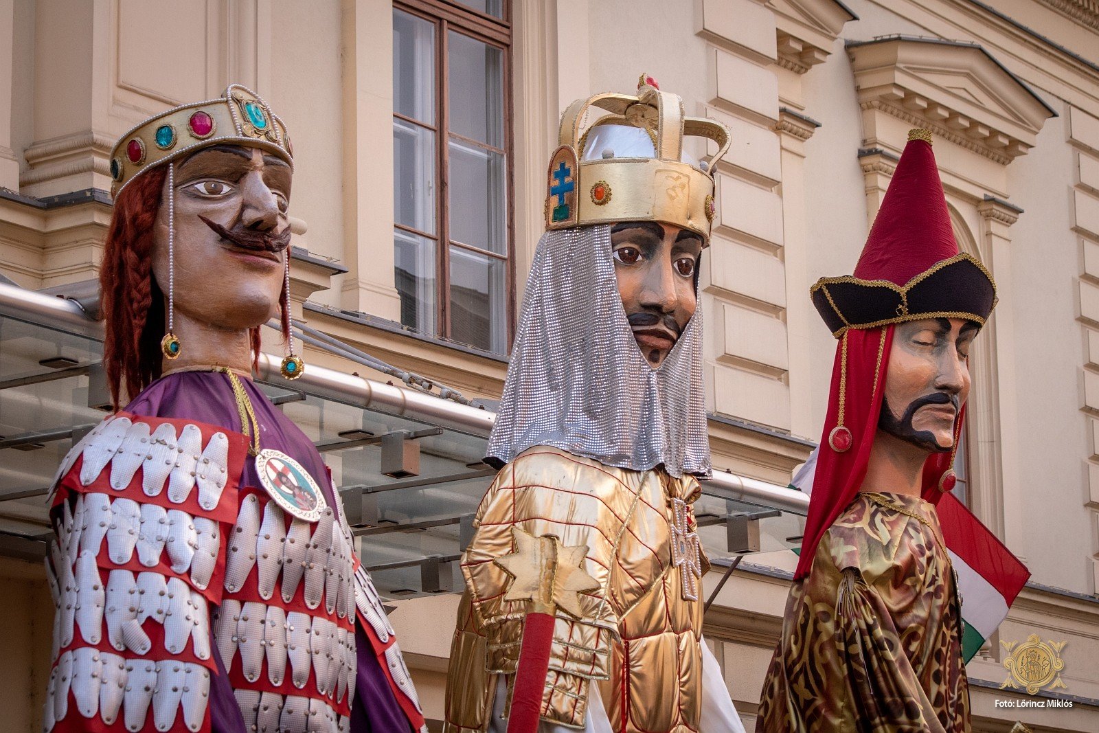 Az óriásokat most Cservenka Ferenc mutatta be, a zenét a Sonivius Vappae régizenei együttes szolgáltatta. A hagyományőrzőket ezen a szombaton az I. András Király Lovagrend tagjai képviselték a menetben, a szokásoktól eltérően a Mátyás király-emlékműnél is megálltak, hogy „harcoljanak”, a kardokról persze rövid ismertetőt is hallhattak az érdeklődők. Ahogyan a múlt héten, a tovább induló menet most is „összefutott” egy ifjú házaspárral, akik mosolyogva lépdeltek el az óriásbábok előtt.