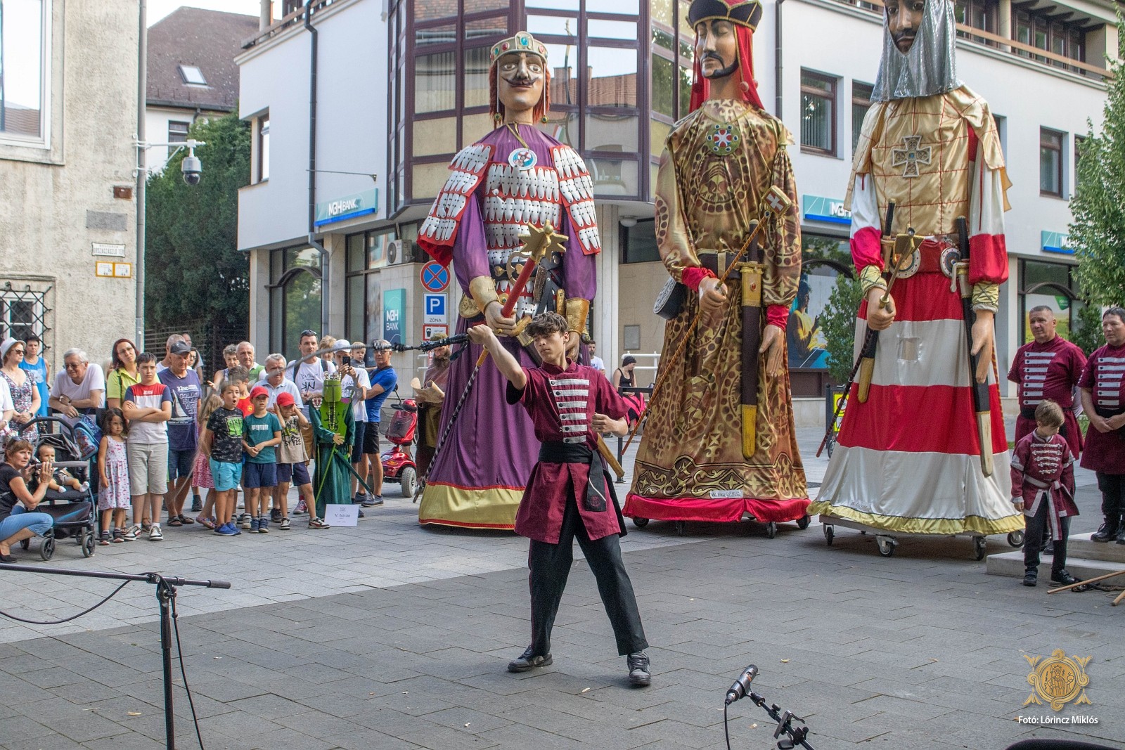 Az óriásbábokat a hagyományőrző csapatok közül ezúttal a Fejér Baranta HSE tagjai kísérték végig a Fő utcán, a séta végén a harcosok bemutatót tartottak az Országzászló téren.