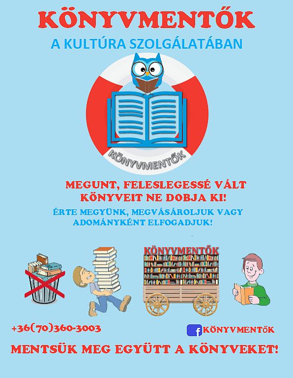 Adományt 100 db könyv alatt a szekéren tudnak fogadni a Könyvmentők, 100 db feletti könyvet pedig ingyen elszállítanak telefonos egyeztetést követően (+36 70/360-3003).