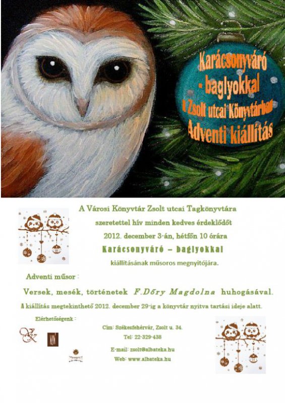 December 3. 10.00 óra Karácsonyváró - baglyokkal című kiállítás megnyitója