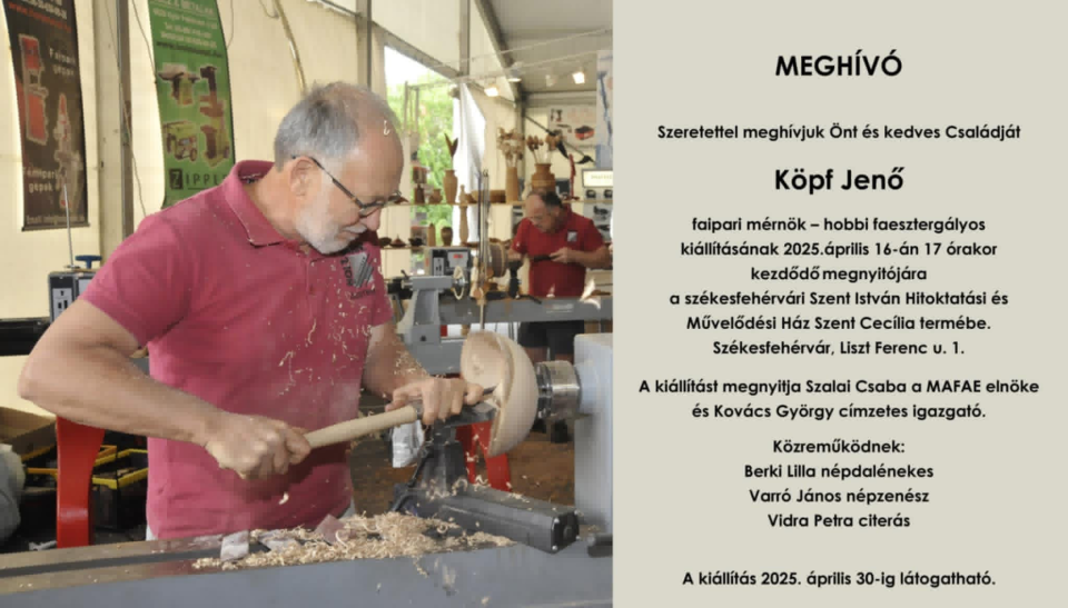 Köpf Jenő faipari mérnököt, hobbi faesztergályost jól ismeri a székesfehérvári közönség, az alkotónak több alkalommal volt már kiállítása a városban.