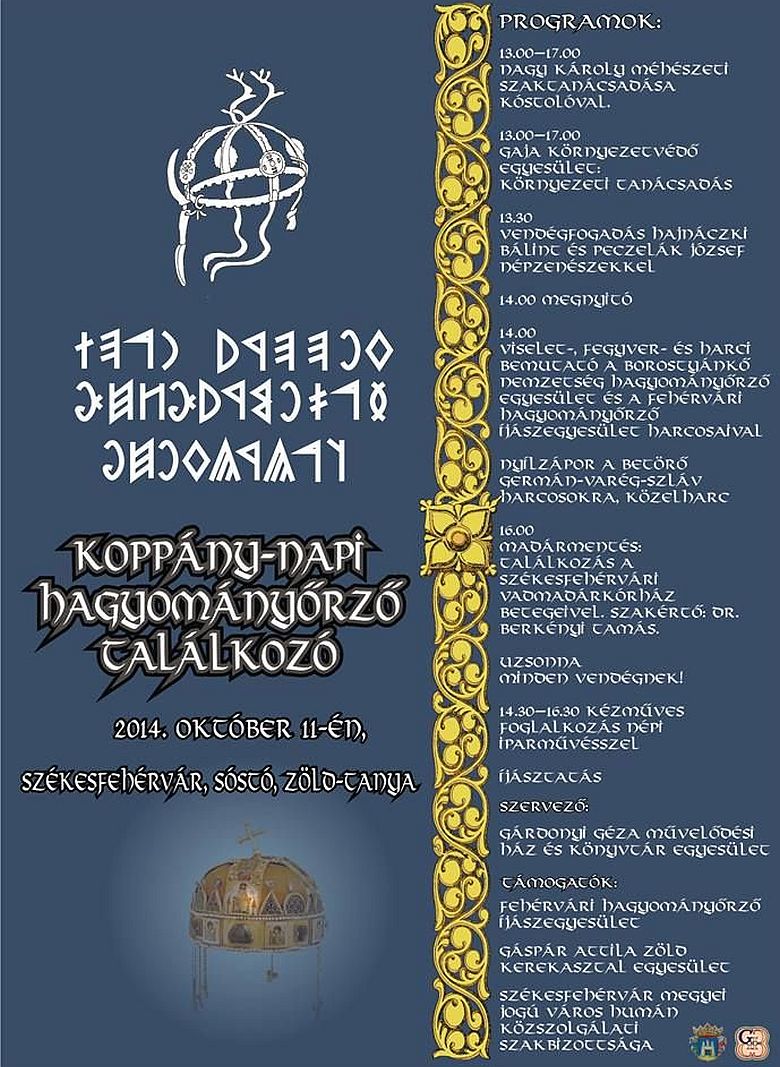 Október 11-én, szombaton 13 és 17 óra között ismét Koppány-napi Hagyomány- őrző Találkozót tartanak a Sóstói Természet- védelmi Területen található Zöld tanyán. Szombaton 13 órától folyamatosan zajlanak majd az érdekes programok: a résztvevők láthatnak különböző harcászati bemutatókat, mindenki kipróbálhatja az íjászkodást, a kézműves foglalkozásokat, valamint viselet-, fegyver- és harci bemutató is lesz.