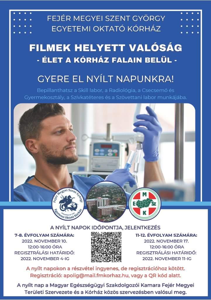 November 17-én, csütörtökön a Fejér Megyei Szent György Egyetemi Oktató Kórház Újszülött-, Csecsemő- és Gyermekosztálya, folytatva a hagyományokat, ismét szeretettel várja az ambulancia aulájában volt koraszülöttjeit és szüleiket, akiknek egy kis programmal szeretnének kedveskedni. Az esemény a köszöntőket követően egy kisfilm vetítésével folytatódik 16.45 órától, majd KangaTraining táncbemutató és népi gyermekjásztó lesz. Közben Lala Bohóc Doktor is rendel, nevetéssel gyógyít és mosolyt varázsol. Lesz arcfestés és Ringató, közös éneklés, beszélgetés és sütizés. Szeretettel várnak mindenkit, aki PICi hősként indult az életben!