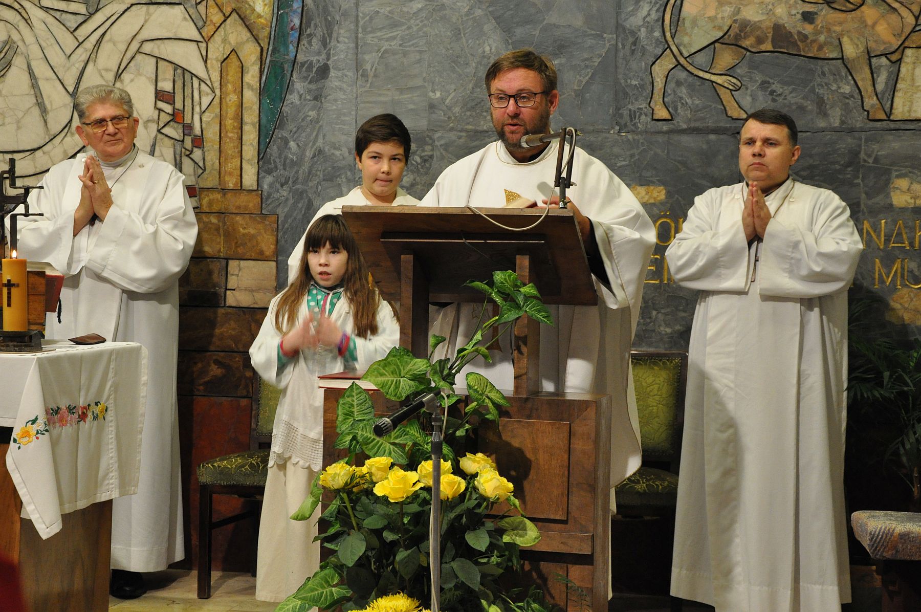 Körmenet és mise a Krisztus Király Napokon - 50 éves a templom hímeskő-mozaik fala