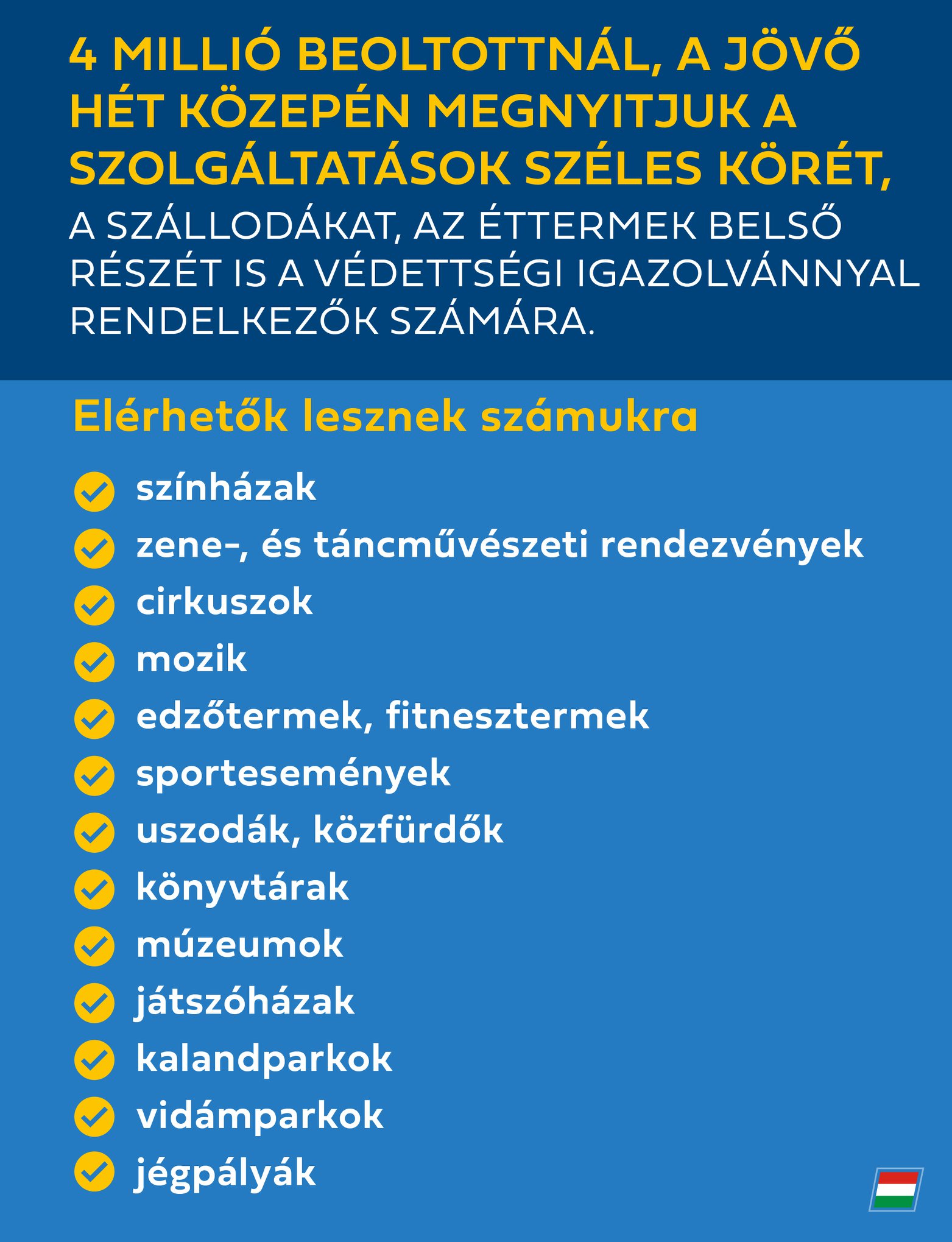 Nyitás a védettségi igazolással rendelkezdőknek 4 millió beoltott esetén: