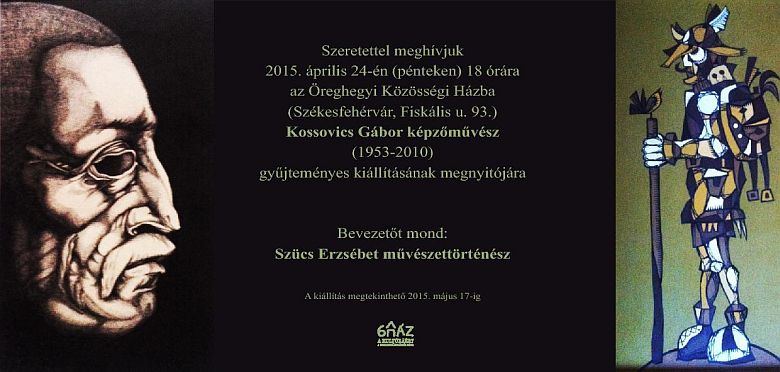 2015. április 24-én, pénteken este Kossovics Gábor képzőművész gyűjteményes kiállításának megnyitójára várják az érdeklődőket az Öreghegyi Közösségi Házba (Fiskális utca 93). Az este 18 órakor kezdődő eseményen bevezetőt mond Szűcs Erzsébet művészettörténész. A jövő pénteken nyíló tárlatot május 17-ig lehet megtekinteni.