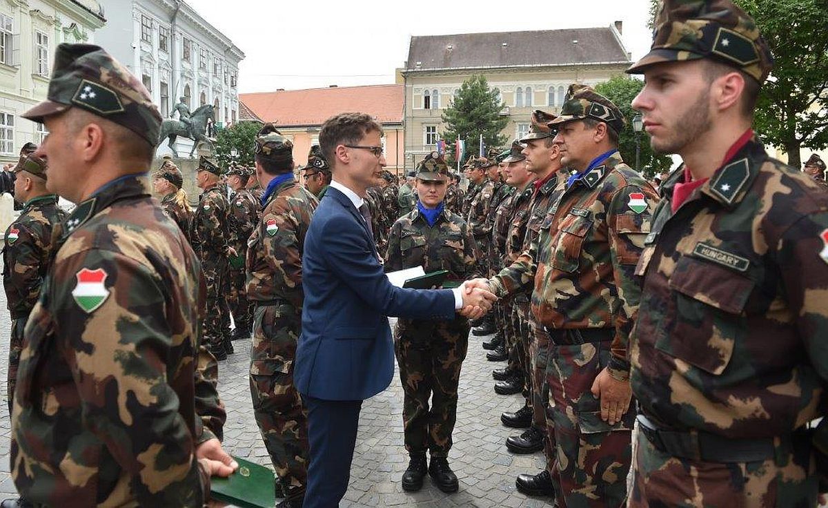 Csütörtökön délután a Városház téren kilencvenhét katona vehette át a Migrációs Válsághelyzet Kezeléséért Szolgálati Jelet. A honvédek heteken, hónapokon keresztül családjuktól távol, nem laktanyai körülmények között végzik azt a feladatot, amire felesküdtek. A Migrációs Válsághelyzet Kezeléséért Szolgálati Jel a honvédelmi miniszter által adományozott kitüntetés, amivel az európai migrációs válság keretében, a magyar határvédelmi feladatokban kiemelkedő helytállást tanúsított honvédeket díjazzák. A kitüntetést a magyar kormány 2015 decemberében alapította.