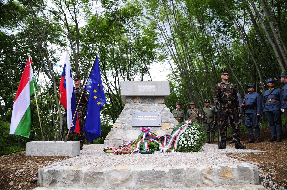 Az első világháború hősi halottainak emlékét őrző gúla alakú emlékmű évtizedekig ismeretlen volt a nagyközönség előtt, azt két évvel ezelőtt magyar kutatók találtak meg szlovén és olasz barlangászok, természetjárók közreműködésével. A romos állapotban lévő emlékmű felújítását magyar civil szervezetek kezdeményezték: gyűjtést szerveztek, majd ehhez csatlakozott a Honvédelmi Minisztérium. A 4. honvéd gyalogezred felújított emlékművét Vargha Tamás, a Honvédelmi Minisztérium parlamenti államtitkára május 29-én avatta fel a szlovéniai Nova Gorica város területéhez tartozó Monte San Gabriele (©kabrijel hegy) déli lejtőjén. A tárca biztosította a Monte San Gabrielén lévő emlékmű felújításához szükséges összeg döntő részét, így a mintegy 8 500 Euróból (nagyjából 2,5 millió Forintból) végzett munkálatok májusra befejeződtek.