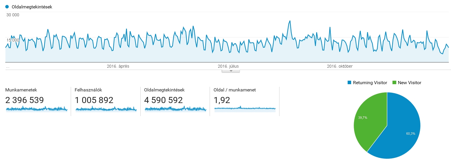 Az elmúlt egy esztendőben 4.590.592 oldalmegtekintés volt a város honlapján, melyet 2.396.539 látogató generált. A Google Analytics által mért statisztikából kiderül, hogy napi 7-9 ezer felhasználó 14-20 ezer lapletöltést generál a város honlapján. A legtöbben Chrome-val a UPC hálózatából néztek minket, de a nagy szolgáltatók mellett a Szivárványnet és a Datatrans előfizetői is szép számal látogatták a város honlapját.