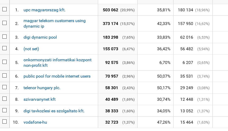A legtöbb egyedi látogatónk UPC hálózatról böngészett minket, a második helyen a T csoport előfizetői nézték a honlapot és a statisztikában még mindig szép számmal vannak a fehérvári Szivárványnet Kft előfizetői is, melyen keresztül több mint 40 ezer látogató érkezett. A Datatrans hálózatából 32.675 ezren nézték meg a fehervar.hu-t 2016-ban, de ezzel éppen nem fért be az első 10-be a másik fehérvári szolgáltató.