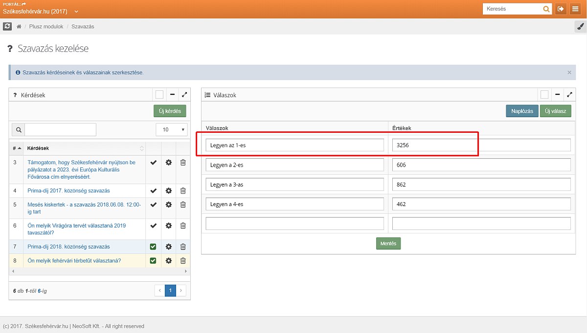 Szavazni október 19-én, pénteken éjfélig lehetett a város honlapján. A pontos szavazatszámokat az alábbi képen láthatják.